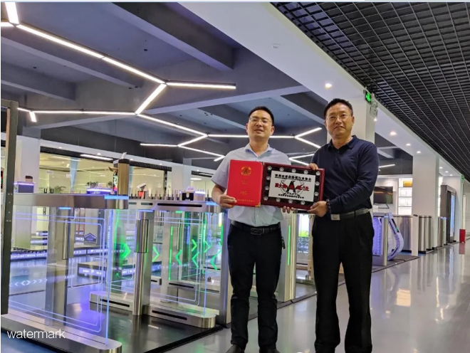 隨后在鐵軍智能展廳,黃云萍先生親身體驗(yàn)了我司研發(fā)的的通道閘產(chǎn)品和智慧校園系統(tǒng)解決方案,并對牌匾的頒發(fā)舉行了一個簡單的儀式。