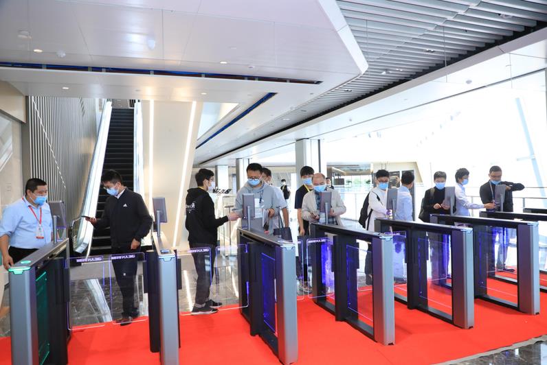 在大會(huì)的通道入口處部署該速通門(mén)測(cè)溫健康碼閘機(jī)后,可對(duì)參展嘉賓開(kāi)展體溫檢測(cè)、實(shí)名認(rèn)證健康碼核驗(yàn)及信息采集功能,系統(tǒng)可以同時(shí)支持粵康碼與國(guó)家政務(wù)平臺(tái)健康碼--二碼合一的自動(dòng)核驗(yàn),每位人員的核驗(yàn)時(shí)間在1秒以內(nèi),將大大提高了會(huì)展的防疫效能,為會(huì)場(chǎng)的防疫工作增加了一道防線,成為本次智慧醫(yī)院大會(huì)的最大看點(diǎn)。