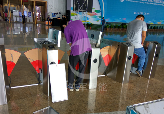 東莞現代國際展覽中心的翼閘道閘機安裝現場