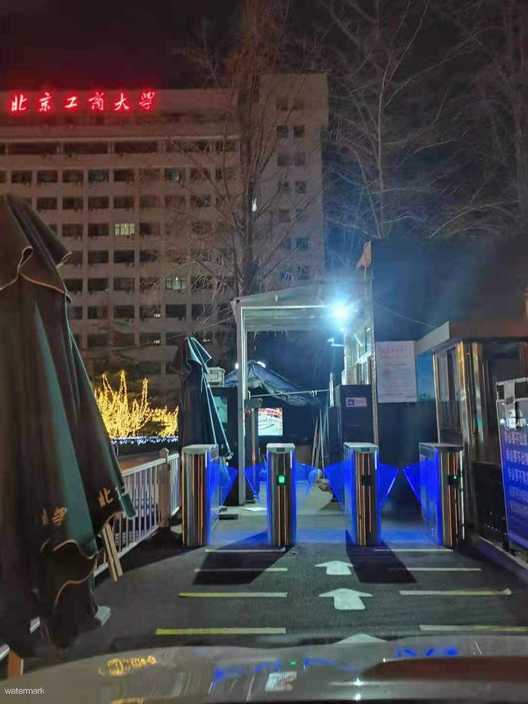 北京工商大學,用于人行通道管理的設備是采用深圳市鐵軍智能科技有限公司的翼閘和擺閘設備。