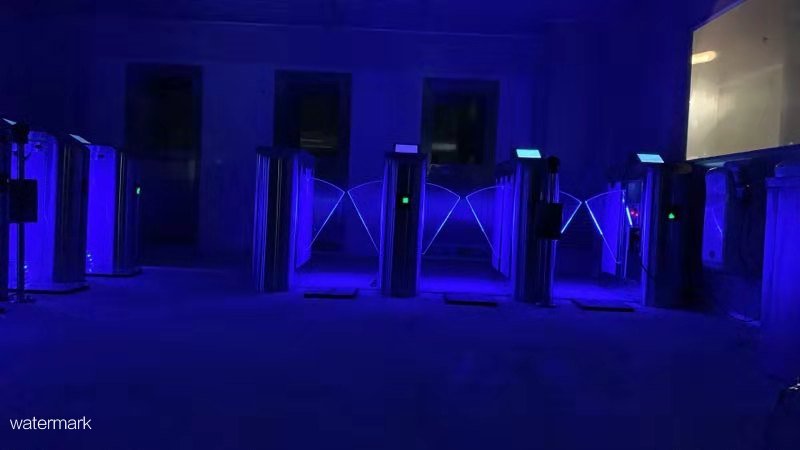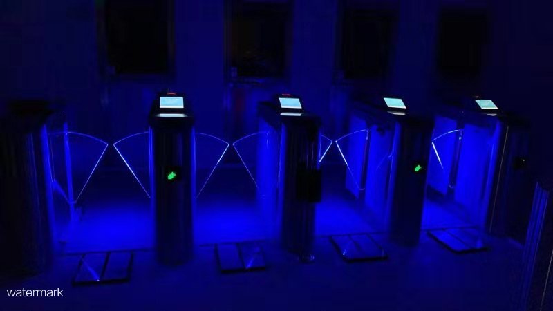 2. 翼閘采用高強度不銹鋼,擋板采用透明發光有機玻璃板。翼閘帶防夾、報警語音提示功能, 並安裝有3組紅外感應探頭,感應人體通過時的情況。