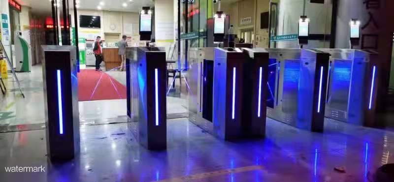 國康碼人臉識別測溫門禁翼閘,可通過人臉識別進行體溫檢測,也可記錄內部職員考勤數據,還能通過刷取身份證核驗身份及人臉聯動翼閘自動開閘。
