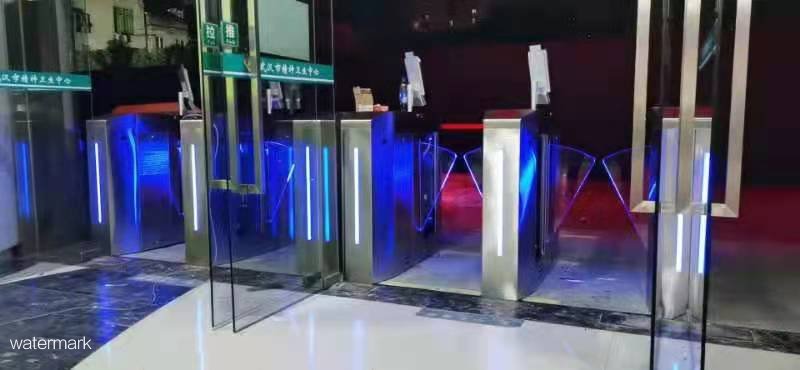 武漢市精神衛生中心于今年5月份應用了深圳市鐵軍智能科技有限公司國康碼人臉識別測溫翼閘一體式多功能門禁設備。